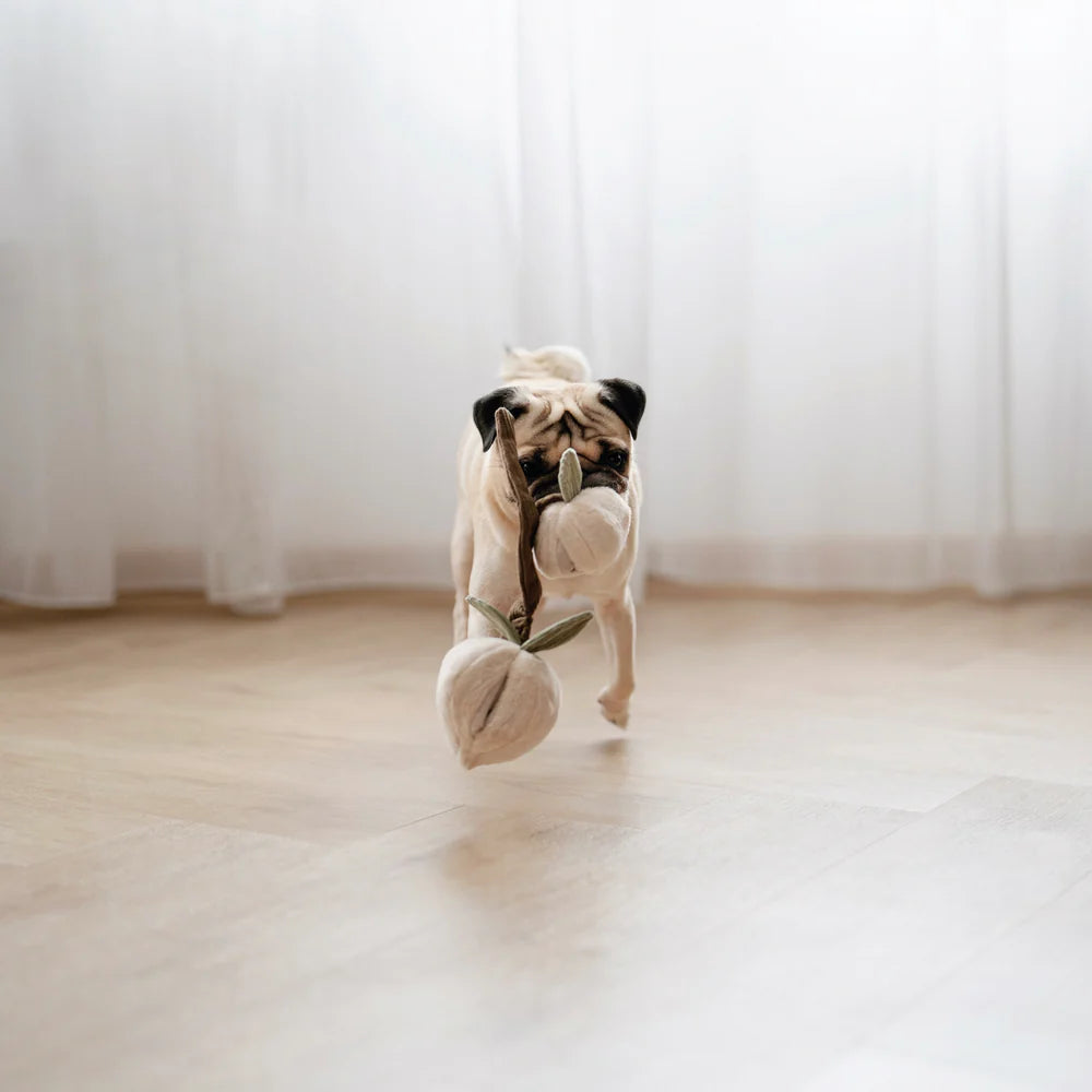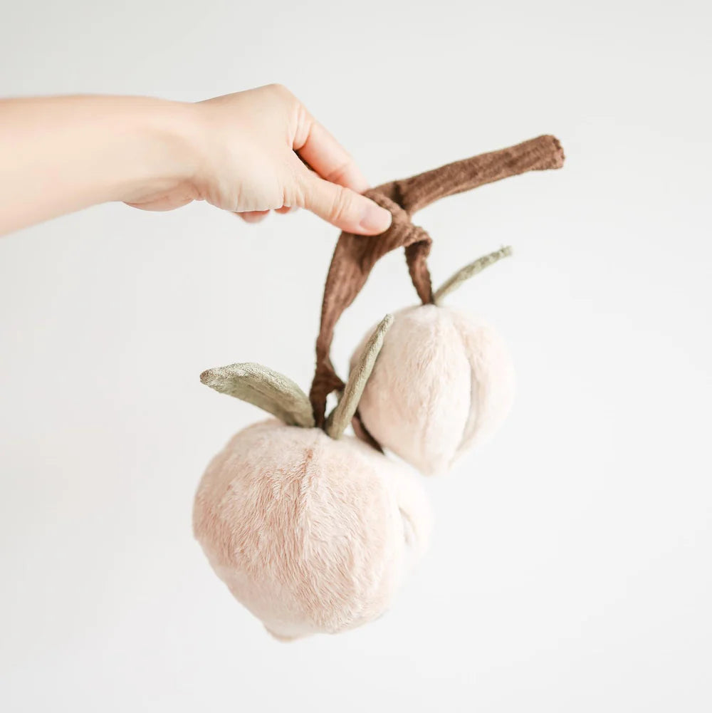 The branch crinkles and connects the two peaches loosely for those who loves to shake while playing. Squeakers are added inside for extra fun.